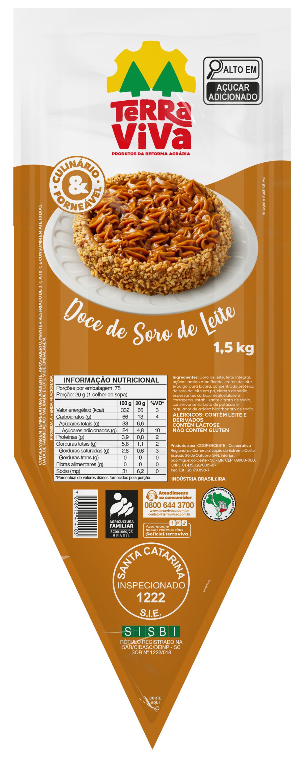 Ingredientes: Soro de leite, leite integral, açúcar, amido modificado, creme de leite e/ou gordura láctea, concentrado proteico de soro de leite em pó, cloreto de sódio, espessantes carboximetilcelulose e carragena, estabilizante citrato de sódio, conservante sorbato de potássio e regulador de acidez bicarbonato de sódio.